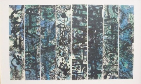 Moshe Kupferman made this ‘Untitled’ artwork with paint to create an image that's more like a feeling than a picture. Look at how the lines are laid down, not too precise, but not messy either. They’re like a structure, but one that's breathing. The colors, mostly blues and browns, feel muted and soft. It's as though Kupferman is interested in the process of making the art, the back-and-forth of adding and subtracting. See how the vertical lines go all the way through, yet there's this dark brown bar interrupting them at the top. It’s kind of like a pause. And then at the bottom, those scribbled lines feel like someone just let loose, maybe after being too careful up above. It’s all very physical. This reminds me a little of Agnes Martin’s grids, but if she decided to let her hair down a bit. Kupferman invites us to see the world not as fixed but as something always becoming.