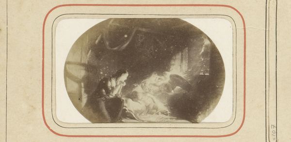 This anonymous photograph, titled "Fotoreproductie van Der Weinachtstraum," presents a staged vision of innocence, likely made in the late 19th century. In it, a sleeping child receives gifts from a hovering angel surrounded by clouds. This visual language reflects the period's idealization of childhood, imbuing it with religious symbolism intended to guide moral development. The scene may appear sentimental to us now, but it reflects the values of the time, echoing the concerns of a society undergoing immense change. Rapid industrialization and urbanization were uprooting traditional family structures and creating new social problems. Sentimental imagery like this was seen to counteract these forces. To understand this image better, we might explore Victorian-era conduct manuals and religious literature. By situating it within this social and institutional context, we can reveal the cultural work performed by art. This photograph reveals a great deal about the values that underpinned Dutch society during the late 1800s.