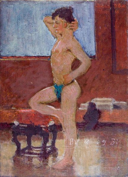 Henri Matisse painted this nude standing in front of a fireplace using oil on canvas. The subject, a female nude, leans casually against the fireplace. The pose echoes classical antiquity, reminiscent of Venus figures, symbols of love and beauty. This motif has been repeated throughout art history. Consider Botticelli's "Birth of Venus," where the goddess emerges from the sea, embodying beauty and sensuality. Matisse strips away the overt mythology, presenting a more intimate, modern interpretation. The fireplace itself, usually a symbol of domestic warmth, is rendered almost abstract. This juxtaposition of the classical nude with modern abstraction reflects our complex relationship with the past. It invites us to consider how we remember and reinterpret these age-old themes.
