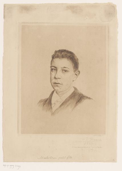 This is Auguste Danse’s self-portrait at sixteen, an etching. Danse, born in Belgium in 1829, came of age during a time of significant social change, as Europe grappled with industrialization, urbanization, and the rise of new political ideologies. Through the intimate lens of a self-portrait, we see how one young man sought to portray himself in a rapidly changing world. His neatly styled hair and the carefully tied cravat might speak to a desire to present a composed and respectable image to the world. The gaze is steady, hinting at both confidence and introspection. In his inscription, Danse declares the etching "épreuve unique," or a unique impression. There’s an undeniable vulnerability in sharing one's image with the world, particularly in a time when the means of representation were not as ubiquitous as they are today. It’s a statement about the self, about the individual, and about art's capacity to capture a fleeting moment in time.