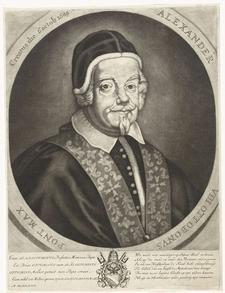 This is an engraving of Pope Alexander VIII, made by an anonymous artist. Consider the historical context in which this portrait was made. Alexander VIII's papacy occurred during a time of significant political and religious upheaval in Europe. As an Italian aristocrat who became a powerful figure in the Catholic Church, his image was carefully crafted to convey authority. Note how the artist uses visual cues to emphasize Alexander's power. The papal robes, the elaborate ornamentation, and the stern expression all work together to project an image of strength and authority. But what about the man beneath the robes? What aspects of his identity are being emphasized, and what are being suppressed? The artwork invites us to consider the relationship between power, representation, and identity in a time of great social and political change.