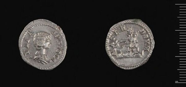 Curator: This is a Denarius of Septimius Severus, a Roman coin, currently held in the Harvard Art Museums collection. Editor: It’s funny, seeing power compressed into something so small and worn. It feels almost…vulnerable. Curator: These coins were powerful propaganda tools, circulating images and messages of the emperor throughout the Roman Empire. The portrait on this coin aimed to project authority and strength. Editor: He does look rather stern, doesn’t he? Though, knowing how empires often operate, maybe a little paranoia is understandable. It makes me think about how leaders today try to control their image. Curator: Absolutely. The coin's reverse would have depicted various symbols of Roman power or specific achievements of Septimius Severus, reinforcing his legitimacy. Editor: It's amazing to think how much history and intention are embedded in this tiny piece of metal. A pocket-sized empire, if you will. Curator: Precisely. It offers a glimpse into the political landscape of ancient Rome. Editor: Something about its size makes me feel closer to history, I guess. It’s a tangible link to another time.