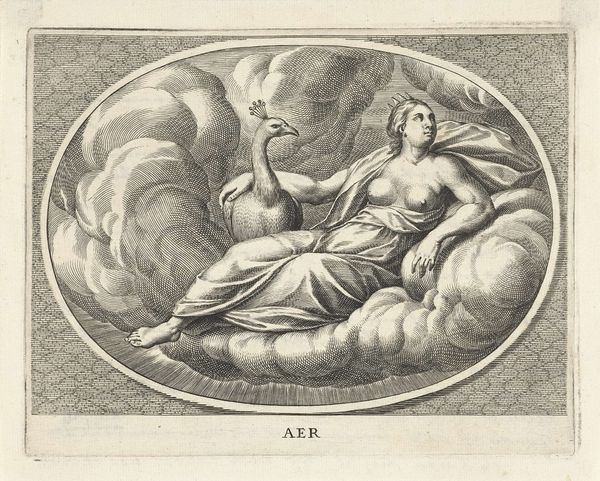 This engraving of air personified by the goddess Juno was made by Johann Sadeler I around 1587. It’s an allegorical image, typical of the period, where natural forces are represented through classical figures. But this wasn't just art for art's sake; these kinds of images played a crucial role in disseminating knowledge and shaping cultural values. Published in sets, they were collected by wealthy patrons interested in science, philosophy, and the arts. Sadeler, based in the intellectual hub of Antwerp, profited from the demand for such material. His prints weren't simply decorative; they reflect the humanist culture of the time. Consider how Juno, queen of the gods, controls the air, suggesting a divinely ordered universe. The detailed clouds and the peacock are visual cues linking her to air and sky. To fully appreciate the print's meaning, we might consult emblem books and scientific treatises popular at the time, understanding how images of this kind were part of a broader system of knowledge and power.