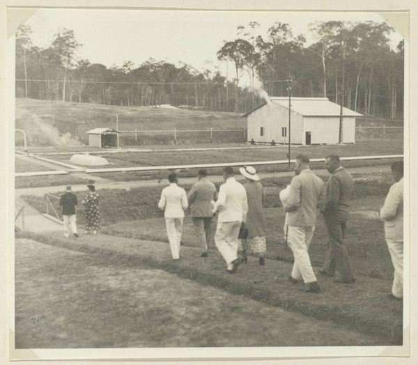 Peter Henry Emerson captured "The Bowling Green" using photogravure, a process that transforms photographs into intaglio prints. Emerson, born in Cuba to a wealthy, white, American family, was part of a late 19th-century movement of photographers advocating for art photography as a fine art form. Emerson sought to capture rural England, specifically East Anglia, with what he termed "truth to nature." The people he photographed were often working-class, rural laborers. This image speaks to the pastimes of working-class men, enjoying a game of bowls. We see working men engaged in leisure. The image hints at social structures and the communal aspects of working-class life. Although Emerson argued for the artistic integrity of photography, his work also reflects the social dynamics of his time, capturing moments of everyday life through his own aesthetic lens. It invites us to consider both the artistry and the social context of this quiet scene.