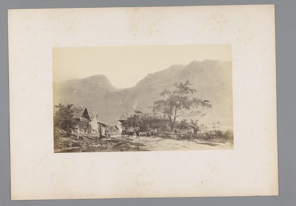 Editor: Here we have Berthold Woltze’s “Huis aan de rand van Bodetal,” a gelatin-silver print likely created between 1860 and 1890. Looking at it, I’m immediately struck by the somewhat… wistful stillness. It’s almost as if the house is holding its breath amidst this vast landscape. What grabs you when you look at this photograph? Curator: Well, firstly, that "wistful stillness" – I love that. I feel it too. It's like a fairytale house plopped down in the middle of the grandest theatre set. And Woltze captured the quiet drama so beautifully! For me, it’s all about that light. The way it almost timidly illuminates the house while the mountains brood in the background... it’s telling a story, don't you think? A story about vulnerability perhaps? Does that resonate with you? Editor: Absolutely! That tension between the cozy, domestic scene and the imposing, wild nature. The house feels so small against those mountains, almost daring. And the photographic technique itself is pretty intriguing, isn't it? I'd like to know more... Curator: Indeed! Think of this as pre-Instagram photography. It was a real commitment. It's amazing how this gelatine silver print allows for a soft tonality and fine detail. There is an ethereal beauty to this realistic style. It pulls you in for a closer look, no? What might the residents of the home thought of this intruder snapping away in their front yard? What’s your take? Editor: It definitely makes you pause and wonder. The everyday and the sublime caught in one frame, with amazing light effects, almost like two opposing forces on stage. Curator: Right? And that interplay... the everyday vs. the awe-inspiring. Maybe Woltze isn't just showing us a house, but also the enduring spirit of those who choose to make a home where nature roars loudest. And that's a beautiful kind of brave, don't you think? I love Woltze's photograph even more after our discussion. Editor: I completely agree. I'll definitely carry that idea of quiet bravery with me now whenever I look at it, thanks.