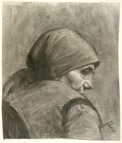 Vasily Polenov painted this head of a young man in a blue veil using oil on canvas. Immediately, one is struck by the composition: the sitter's profile fills most of the frame, set against a subtly modulated backdrop of blue and cream. Polenov's brushwork is visible, adding texture and immediacy. The veil, rendered in deep blacks and blues, frames the face and draws attention to the sitter's features. The semiotic weight of the headdress cannot be ignored. The textures and tones might evoke the subject's cultural identity. Polenov masterfully uses light and shadow to give volume to the face, highlighting the planes of the cheeks and the contours of the nose. The neutral background allows us to focus on the individual’s expression. The work invites ongoing interpretation of identity, representation, and cultural encounter.