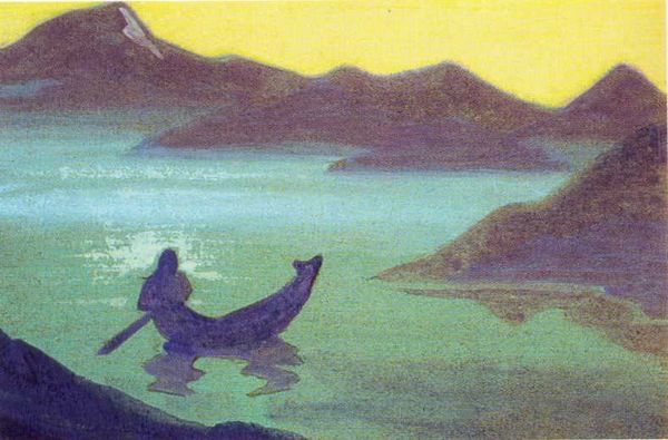 Editor: Frederic Remington’s “Coming to the Call,” painted in 1905, is a striking oil on canvas. I am immediately drawn to the mood – this almost ethereal stillness. A solitary moose by the water is a striking subject of representation, particularly due to the tonality and its mirroring. What statements do you think this painting is trying to make? Curator: The ethereal quality you mention isn't accidental; Remington, later in life, moves towards tonalism. Think about the West he made a career depicting. Was it truly the rugged individualist landscape we see celebrated, or a site of profound and often brutal cultural clash and environmental exploitation? A canoe grounded ashore is reminiscent of displacement of indigenous groups and loss of culture through government policy that we continue to reckon with today. This painting becomes more complicated when viewed with the legacy and context of its creation. Editor: So, you're saying that his stylistic shift might reflect a deeper engagement with these socio-political issues? Curator: Absolutely. The reduction of detail, the emphasis on mood, can be interpreted as a visual critique of the mythology of the "Wild West," urging us to consider the costs of that expansion. Think about whose “call” is he referring to and how that relates to power structures and dispossession. Editor: It’s really interesting how his approach to painting can make this a potent social commentary. This makes me think about whose stories are prioritized and whose are silenced or altered in the artistic canon. Thank you! Curator: My pleasure! Remember that artworks are never neutral objects; they’re active participants in ongoing conversations about identity, power, and history. I am glad you’ve understood it that way.