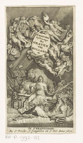 Cornelis Visscher created this print, using etching and engraving techniques, as the title page for a series of counts and countesses of Holland, Zeeland and West Friesland. Made around 1650 in the Netherlands, this image presents a symbolic summary of Dutch history and identity. The allegorical figure of the Dutch Maiden is at the center, crowned by a cherub and backed by the Dutch lion. She embodies the virtues and aspirations of the Dutch Republic, newly independent from Spanish rule. Surrounding her are emblems of maritime power and prosperity, referencing the country's economic strength and global reach. On the lower-left, the god of the sea, Neptune, symbolizes the Netherlands’s dominion over the oceans. Prints like this played a crucial role in shaping national consciousness. They circulated widely, reinforcing shared values and historical narratives. For historians, these prints are invaluable resources. By examining their visual language and cultural references, we can gain insights into the social and political landscape of the Dutch Golden Age.