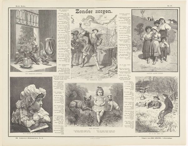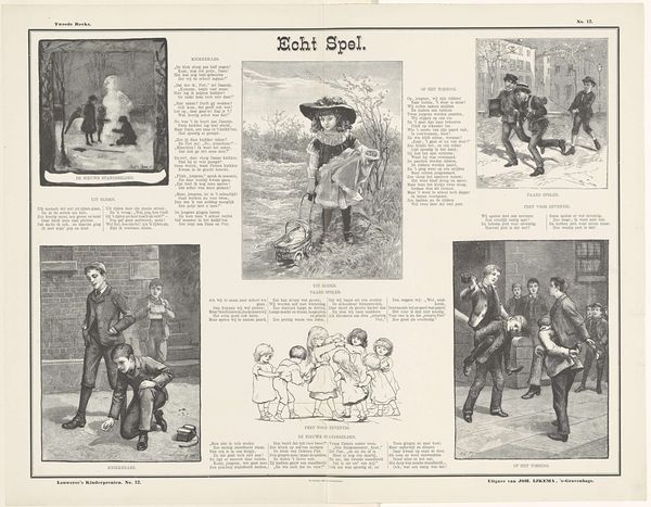 This print, titled 'Dol veel Pret'—or 'Lots of Fun'—by H.F. Davey, captures childhood play in various scenes. Notice the children with their games, seemingly free from the weight of the world, or the girl balancing a bundle on her head. This posture echoes the ancient Greek Caryatids, figures supporting architectural structures. Here, however, the burden is playful, almost a game. It’s not just about physical balance, but also a balance of youth and responsibility. Consider how such images resonate across time, echoing in Renaissance paintings and even modern photography. What does it tell us about the enduring human fascination with youthful innocence, and the games we play to both embrace and escape reality? It reveals a deep, subconscious desire to preserve joy against the inevitable passage of time. These fleeting moments of cheerfulness, captured here, remind us of the cyclical nature of life, where play is both an escape and a preparation for the burdens to come.