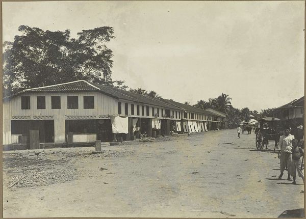Eugen Klein captured this street view with a post office in Groote Combé, Paramaribo, using a photographic process during a period of significant colonial influence in Suriname. This image provides a glimpse into the complex social dynamics of early 20th-century Suriname, marked by Dutch colonial rule and its impact on local populations. Klein, as a European artist, frames the scene in a way that reflects the power dynamics inherent in colonial relationships. Note how the architecture blends European styles with local materials, a visual representation of cultural imposition and adaptation. The presence of local inhabitants going about their daily lives invites us to consider their experiences within this colonial context. What does it mean to see their lives filtered through the lens of a European photographer? This photograph isn't just a historical record; it's an artifact that provokes questions about identity, representation, and the lasting legacies of colonialism.