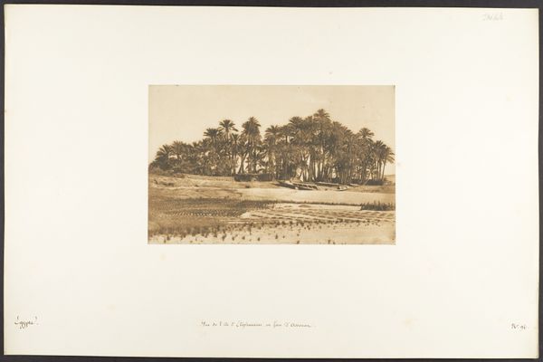Maxime Du Camp made this photograph, "Vue du Village de Hamarneh, près de Dendérah", using a paper negative. Notice how the sepia tones and the high contrast between the stark sky and the textured earth create a formal composition of horizontals and verticals. This is reinforced by the stark vertical lines of the palm trees against the horizontal band of the village. Du Camp was part of a mission to document Egypt, yet this image operates beyond simple representation. The photograph functions as a signifier, its visual elements imbued with codes that point to the exoticism of the East, and the ambition of European expansionism. Consider the way the photograph's composition encourages us to ponder its structural oppositions. It serves not only as an aesthetic experience but as an artifact deeply embedded in the cultural and philosophical narratives of its time.