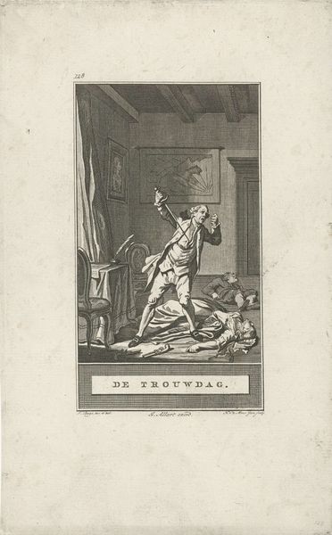 Editor: This engraving, "Death of Archimedes" by Ludwig Gottlieb Portman, dates to 1795 and is currently held at the Rijksmuseum. It depicts a soldier bursting into a room, sword raised, seemingly about to strike Archimedes, who sits calmly at his desk. There's a real sense of impending violence juxtaposed with the scholar's focused stillness. What do you make of it? Curator: Well, situated within the broader context of neoclassicism, it reflects a renewed interest in classical antiquity, yet with a strong undercurrent of political messaging, don’t you think? How do you interpret the choice to depict this specific moment in Archimedes’ life? Editor: It feels like a statement about the cost of intellectual pursuit, maybe? The way knowledge and reason can be threatened by brute force. Is that a reading you think holds up historically? Curator: Absolutely. Remember, the late 18th century was a time of revolution and upheaval. Representing Archimedes' death, an event from the Roman conquest of Syracuse, would resonate deeply with contemporary anxieties about the fragility of civilization and the abuse of power. Portman used this historical subject to engage a discussion about the values of the Enlightenment versus tyranny, reflecting contemporary ideological struggles through the lens of the past. How might the display context within the Rijksmuseum today influence our understanding of this artwork now, do you think? Editor: That’s fascinating! Putting it in a museum obviously elevates it, but it also kind of detaches it from that immediate political urgency. It becomes a historical document as much as a commentary on power. Curator: Precisely! And that shift in reception over time highlights how institutions like museums actively shape and reshape the meaning of artworks, directing us towards specific interpretations, moving the social and political narrative onward. Editor: That really makes me rethink how art functions as a kind of ongoing conversation with the present. Thanks! Curator: Indeed! And examining how an artwork's meaning evolves within the public sphere gives us insights into broader historical currents.