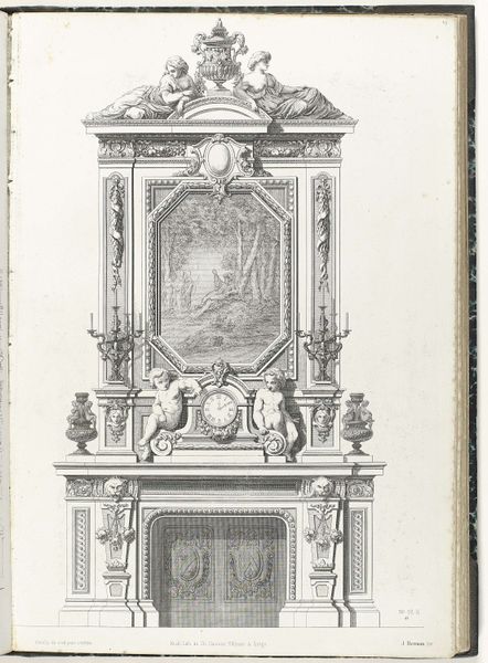 Editor: So this is "Boven- en onderkant van onderboezem", from circa 1866 to 1900 by Charles Claesen, it seems to be an engraving printed on paper, depicting a fireplace. It has a very architectural feel with geometric shapes. How do you interpret this work? Curator: This print provides a window into 19th-century modes of artistic production, specifically concerning architectural designs. Observe how the means of reproduction – engraving – allows for dissemination of these designs on paper to a wider audience, influencing taste and construction practices. We should be less concerned about the high art, and focus instead on how this was made. The material processes speak to a broader system of labor and knowledge sharing, don’t you agree? Editor: That's interesting. I was mainly focused on the aesthetic aspects and the detailed craftmanship within the architecture itself. But seeing it as part of a larger system makes sense. Curator: Exactly. Consider the paper itself: its sourcing, manufacturing, and cost reflect economic and social dynamics. The engraving technique—how does that inform the distribution and consumption of such architectural plans? Think about how that influences labor and available resources, such as metal and manpower! What socioeconomic class would commission or even consider such a fireplace design? Editor: Thinking about it that way opens up so many new perspectives! I guess I hadn’t thought enough about the connection between the art itself and the resources it took to make it. Curator: It’s all about grounding the artwork in its material reality. What do you make of that connection now? Editor: It emphasizes how intertwined art, labor, and society really are, that even this image hints at so much more than just a design for a fireplace. It is more about the time and making involved in the production. Thank you for broadening my perspective. Curator: Likewise. It is helpful to revisit seemingly traditional art forms while keeping production, labor and materialism in mind.