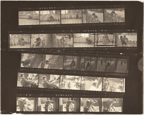 Robert Frank made this gelatin silver print, "Guggenheim 168--Miami, Florida," sometime during his career. What’s cool about this piece is how Frank isn't precious with his images; he's showing us the raw, unedited strips of film, complete with sprocket holes and all the little imperfections. The grainy texture, the high contrast, it's all part of Frank's signature style. Look at the sequence of images, how they jump from scene to scene. There's one strip where you can make out an image of shoppers inside, then he flips to people outside. It's like he's inviting us to see the world through his eyes, a world that’s fragmented and fleeting. Frank was a huge influence on a whole generation of photographers, kinda like what the Velvet Underground was for music. He showed us that art could be rough, honest, and deeply personal.