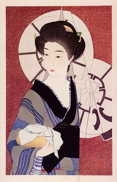 Editor: Here we have Uemura Shoen’s "Untitled" painting, an elegant portrait of a woman in traditional dress. There's a quiet, almost melancholic mood. What can you tell me about the context surrounding this work? Curator: Well, considering Shoen’s pioneering role as a female artist in a male-dominated field, and the subject’s gaze directed away from the viewer, this is a perfect lens through which to view evolving ideas about women at the time. Do you see a connection with, perhaps, the rise of feminism? Editor: That’s an interesting point, although I would need a bit more context to be sure about making the leap to feminism. Curator: Sure. Remember, the Ukiyo-e tradition, while often depicting courtesans, was consumed largely by a male audience. Shoen, however, offers us a female perspective, in which the subject becomes more than just an object. What impact could the shift from object to subject have on representation and lived realities? Editor: I hadn't thought of it that way before. Looking at it now, the subtle expression does suggest a deeper, perhaps more complex interior life, beyond mere aesthetics. It certainly complicates my initial reading of melancholy. Curator: Exactly! It’s a negotiation, a dialogue between traditional representation and modern identity, raising vital questions about agency and representation within patriarchal structures. Editor: That makes a huge difference to how I interpret this artwork. Thank you! Curator: Of course. It highlights the crucial role art plays in mirroring and shaping social change.