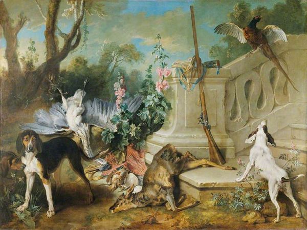 Jean-Baptiste Oudry painted "Dog Guarding Dead Game" in France, sometime in the mid-18th century. At this time, France was an absolutist monarchy and the aristocracy dominated cultural life, Oudry was commissioned to paint by members of the royal court. The artist presents a hunting dog, posed mid-snarl in the foreground, guarding a collection of dead animals. Hunting was a favorite pastime of the aristocracy. Oudry himself was the official painter to the royal hunt. This painting then is as much a representation of the nobility’s pastimes, power, and status, as it is about the animals portrayed. The dog itself is a status symbol, just as the hunted animals are, with a suggestion of their value as trophies. The paintings of Oudry and his contemporaries can be approached from different perspectives. We might see the dog as a symbol of loyalty, or the dead animals as a reminder of mortality. However, the painting takes on a new level of meaning when understood in its historical context. We can research the history of the French monarchy and the cultural norms of the aristocracy, to better understand the work.