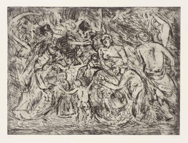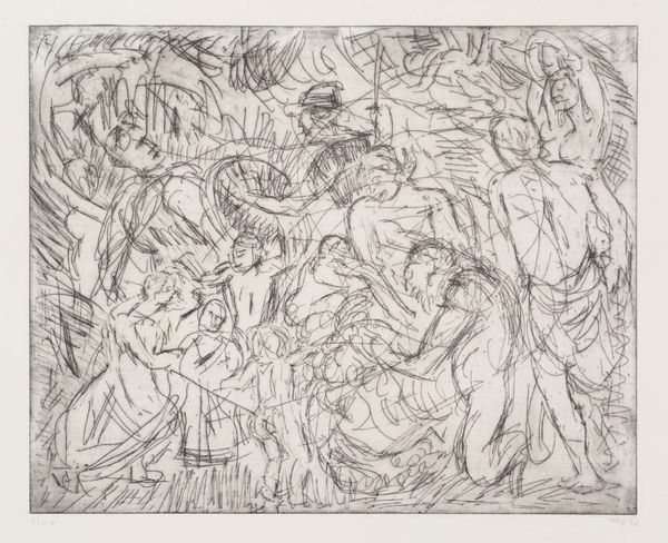 Curator: Luca Giordano's pen and brown ink wash drawing, "Martyrdom of Saint Lawrence," captures a scene of intense suffering and religious fervor. Editor: It looks like a flurry of bodies, sketched with such energy. The composition gives the impression of chaos and torment. Curator: Absolutely, the frenzied lines convey a sense of the dramatic, even at this small scale of roughly 15 by 19 centimeters. The materiality is so simple. Editor: The grill is central, of course, as the key symbol of St. Lawrence’s suffering, but the upward gazes suggest a connection between earthly agony and divine transcendence. Curator: The method of production mirrors the subject; Giordano utilized the simplest tools, pen and ink, to depict themes of violence and power. Editor: Such a vivid portrayal of faith through suffering. It really emphasizes the iconographic legacy of martyrdom. Curator: I agree; the quick, expressive marks add to the immediacy of the event. Editor: A stark and powerful reminder of the enduring power of symbols.