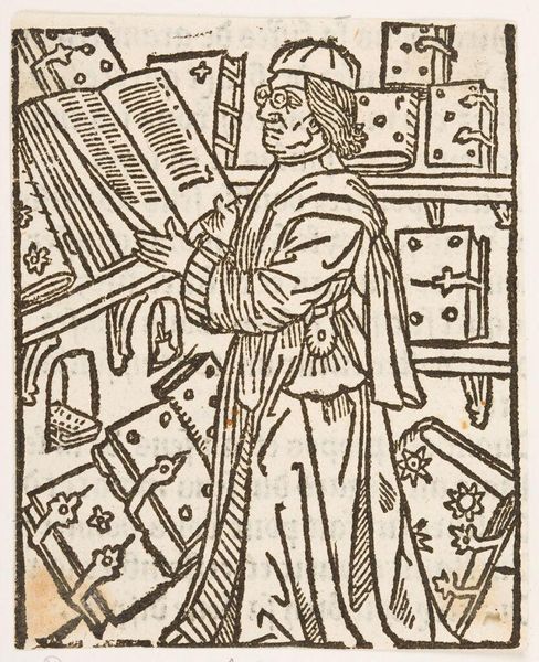 Editor: So, this is "Illustration I" by an anonymous artist. It looks like a woodcut print. It gives me the feeling of being in a classroom. What strikes you when you look at this image? Curator: This image provides an interesting glimpse into historical modes of knowledge transmission. How might the figures depicted here represent power dynamics related to education and access to information? Editor: I didn't think about power. Curator: Consider who has access to knowledge, who is teaching, and what social structures might be reinforced by this scene. It prompts us to think about knowledge as a form of social capital. Editor: That's a new way to think about a classroom setting. Thank you! Curator: Likewise, your observations enrich my understanding.