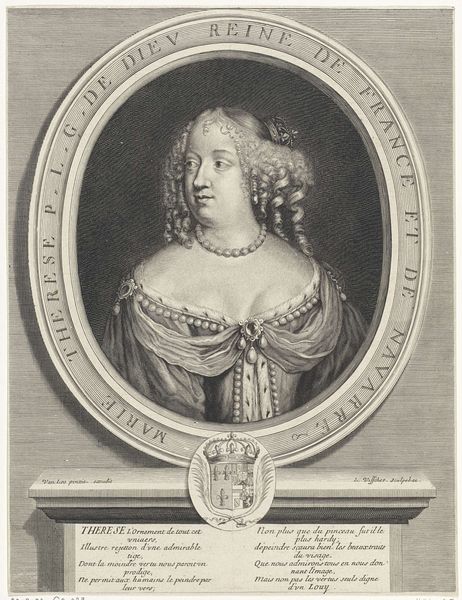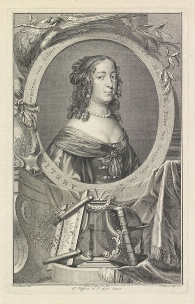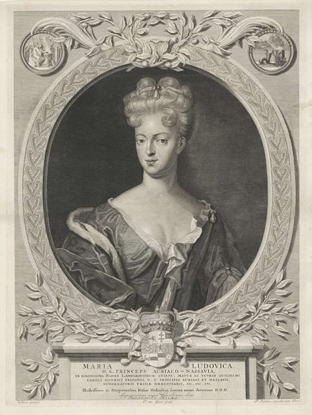 Curator: This is Étienne Johandier Desrochers' engraving of Mary II of England, a powerful visual statement even without a precise date. The composition immediately conveys a sense of authority. Editor: Absolutely. The textures—the paper itself, the ink, the way light catches the crown—create a tactile experience, drawing attention to the labor involved in its creation and distribution. Curator: I see a carefully constructed representation of female power, yet also a commentary on gender roles and expectations within the monarchy. Mary's position was complex and often questioned. Editor: Indeed, the materials speak volumes about access and privilege. Engravings like these were crucial for disseminating royal images but also for shaping perceptions of queenship as a kind of commodity. Curator: It's fascinating to consider how this image might have been received, particularly by women of different social strata, engaging with or perhaps challenging the notion of monarchy. Editor: By examining the materiality and its role in constructing social narratives, we see how power is both represented and materially enacted. Curator: A nuanced portrait that invites us to question the very nature of representation and royal authority. Editor: Precisely, it reminds us that even seemingly straightforward portraits are built upon layers of social meaning, made tangible through the work of creation.
