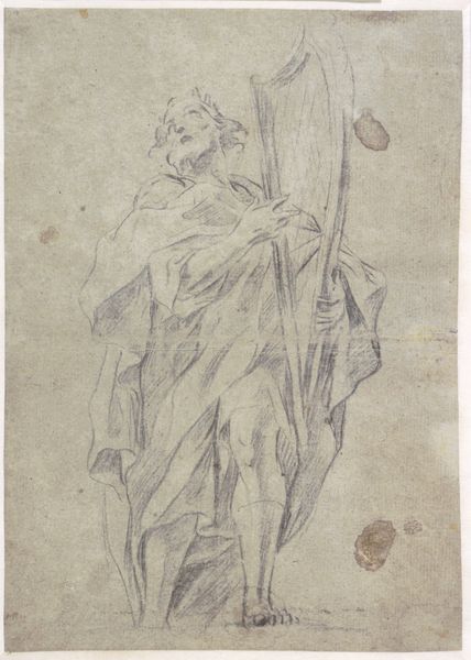 Parri Spinelli rendered this drawing of Hercules leaning on his club in pen and brown ink. The hero stands, his weight supported by the rough-hewn club, a symbol of his brute strength and heroic victories. Consider this club, a crude yet powerful object. It echoes the hero’s own complex nature—strength tempered by inner turmoil. Think back to classical sculptures where Hercules is often depicted with the skin of the Nemean lion draped over his shoulder. Here, the skin is absent, but the club remains, its presence a stark reminder of his labors and triumphs, of man's capacity to overcome. We may see how this posture, the hero in repose, yet armed, resonates through time, appearing in countless depictions of weary warriors and contemplative saints. It speaks to something primal within us, the enduring need for strength, protection, and the acknowledgment of battles fought and won, mirrored in our collective psyche.