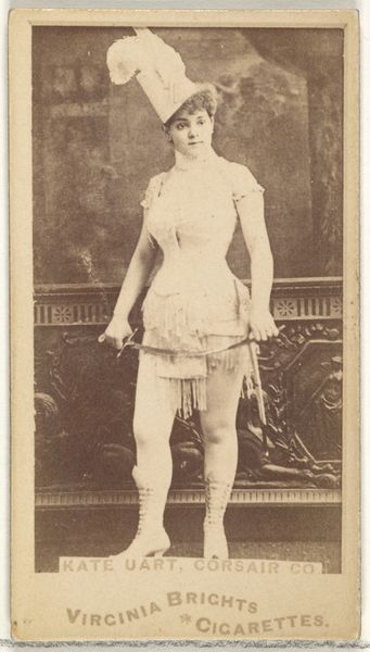 This small photograph of Sadie Herne was made for the Virginia Brights Cigarettes company, likely sometime in the 1880s in the United States. This image belongs to a series of collectible cards that featured actors and actresses of the day. These cards remind us of the deep connections between the rise of mass media and the commodification of public figures. Here, Herne's image is not just a portrait, but a carefully constructed advertisement. We can consider how the image creates meaning through visual codes, cultural references, and historical associations. The format reflects a growing culture of celebrity endorsements and mass marketing. The distribution of these cards speaks to the evolving relationship between commerce, entertainment, and identity in late 19th century America. Understanding this image requires us to delve into the social and institutional history of the period. What role did advertising play in shaping cultural values? How did the theater industry intersect with the emerging consumer culture? These are just some of the questions that historians can explore.