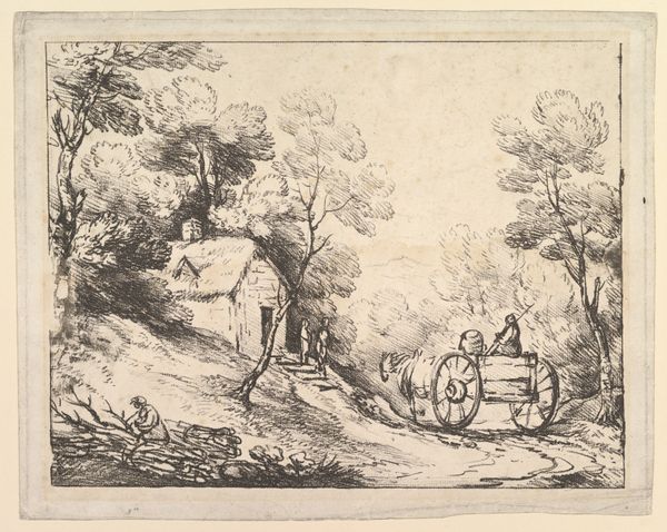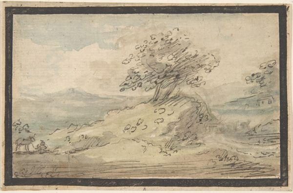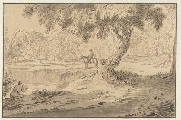 Herman van Swanevelt made this landscape with pen and brown ink, and brown wash, on paper. These are fairly traditional art materials, but Swanevelt’s technique gives the scene its particular character. The brown wash is applied in broad, sweeping strokes that define the light and shadow, giving volume to the trees and hills. The pen work is more precise, used to add detail and texture. Look closely and you can see the way the artist used hatching and cross-hatching to create a sense of depth and atmosphere. The quick, confident strokes of the pen suggest that Swanevelt was a skilled draughtsman, confident in his ability to capture the essence of the landscape. The work has an immediacy that suggests it may have been made *en plein air*, directly from nature. This was a common practice for landscape artists of the time, who sought to capture the beauty and grandeur of the natural world. Paying attention to materials, making, and context allows us to understand the artist's vision, and challenges traditional distinctions between fine art and craft.