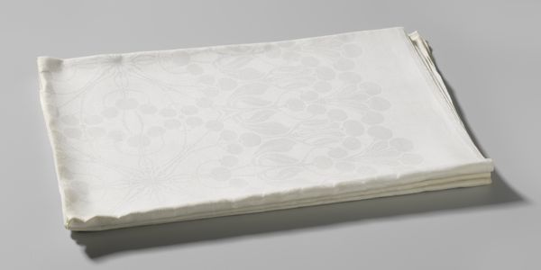 Editor: Here we have a linen damask tablecloth with strawberries by Chris Lebeau, dating roughly from 1878 to 1945. The repeated strawberry motif gives it such a delicate and ornate feel. How do you interpret the purpose and place of an object like this in its time? Curator: It’s fascinating to consider textiles within a social context. In the late 19th and early 20th centuries, pieces like this weren’t merely functional; they were powerful signifiers of domestic ideals and social standing. Can you imagine the impact a pristine, patterned tablecloth like this had on guests? Editor: It does evoke a certain formality. Were these table linens exclusively for the upper classes, or did their production and distribution have a broader impact? Curator: That's a key question. While the *ownership* was often linked to middle and upper classes who could afford these decorative items, the *production* involved a vast network of labor. Consider the textile mills, the designers, the merchants – this single tablecloth connects to a complex web of social classes and economic systems. It prompts us to question labor practices and the relationship between consumerism and social hierarchy. How might Lebeau's design aesthetic engage with this socio-economic landscape? Editor: So the “Pattern and Decoration” is not only aesthetic, it’s inherently political. Thinking about it as an artwork on display in the Rijksmuseum adds another layer, doesn't it? It elevates a functional object, inviting us to see it through this critical lens. Curator: Precisely. Its presence here redefines notions of art versus craft, high culture versus domestic sphere, underscoring how museums shape what we value and how those values are tied to cultural narratives. Editor: This has made me rethink my assumptions. I came expecting pretty decoration, but now I see layers of social and political meaning embedded in this tablecloth. Curator: It's a perfect reminder that even everyday objects carry a rich history and speak volumes about the societies that produced and used them.