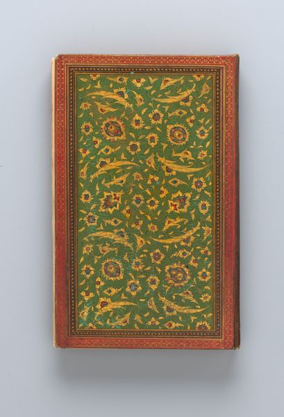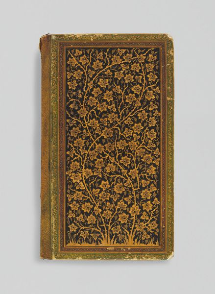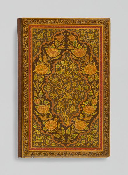 Editor: We’re looking at the “Divan of Hafiz,” a 16th-century book from the Safavid dynasty. It’s made of ink, paper and gilding. It feels like a very precious object. The cover design is exquisite. What can you tell us about its role as a cultural artifact? Curator: This "Divan," a collection of poems by Hafiz, wasn’t merely a book; it was a symbol of Persian cultural identity and intellectual life. Consider how the Safavid dynasty actively cultivated the arts to legitimize its rule and consolidate a sense of national pride. What do you notice about the visual elements of the cover, and how might they relate to the sociopolitical context of the time? Editor: Well, the intricate floral patterns and gilding seem to suggest luxury and refinement. Were these books only for the elite? Curator: Precisely. Manuscript production was often patronized by the court or wealthy individuals, making them markers of social status. Furthermore, the book itself as a symbol. The arts played a huge role in courtly rituals, didacticism, and cultural self-definition, serving as vital visual representations of power and Persian identity. Editor: So, it's more than just pretty; it's loaded with political meaning. How does its display in a museum like the Art Institute of Chicago impact our understanding of it today? Curator: Placing the "Divan" within a Western art museum invites a different audience and set of interpretations. It moves the object into a space of intercultural dialogue and potentially reshapes its meaning. Do you think that it amplifies certain narratives, or maybe obscures others? Editor: I think it both elevates it as an art object and maybe disconnects it from its original social function. I've definitely learned a lot about the role of art in politics. Curator: And understanding that interplay gives us a more comprehensive view of both the artwork and the culture that produced it.
