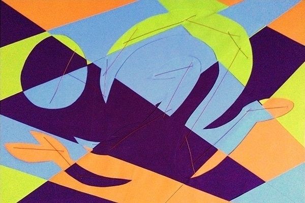 Rodrigo Franzao made this painting, "Exclusion Essence," with—well, I wish I knew what he made it with! What strikes me first is the jigsaw grid of color, almost a child’s game, yet the dark tones give the painting a much more serious feel. It’s all about process. Take a look at where the lines are made, the angles and color. The painting is a flat plane, yet you feel the composition and use of dark tones create a feeling of something being hidden. The thickness of the contrasting geometric colors add something to the intensity of feeling, making the work both confusing and fascinating. It reminds me of early Mondrian but with a twist, or even what you might see with Sonia Delaunay's use of color in her geometric forms. I think art is a journey and this is a journey through someone's thought process, a stream of consciousness, and there is always ambiguity in a work of art, rather than a fixed meaning.