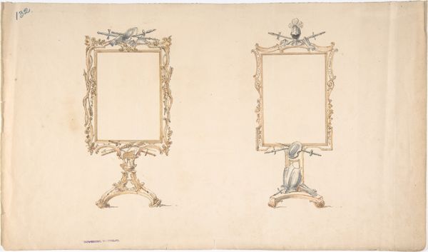 Curator: At the Metropolitan Museum, we find "Designs for Three Screens" attributed to Charles Hindley and Sons, dating from 1841 to 1884. It’s a drawing and print combining pencil and ink on paper, showcasing three variations on what appear to be decorative screen designs. Editor: Mmm, austere elegance. My first thought looking at these aged designs is of a faded memory. Like looking through an antique mirror at a room that is both familiar and strangely distant. There's something ghostly and ornate about the light pencil work that draws me in. Curator: The style clearly aligns with the Arts and Crafts movement, doesn’t it? Each screen exhibits an almost obsessive attention to form, a dedication to the decorative line. What I see echoed here are values rooted in a rejection of industrial mass production. The revival of handcraftsmanship as a path towards moral and aesthetic reform. Editor: Absolutely! You know, what fascinates me is that the designs aren’t identical, there are these subtle variations in the ornamentation on the top and feet. To me, they seem like variations of a thought or a motif that the artist is chasing to completion. Perhaps an unfolding narrative, and certainly revealing the maker's process through sketching. It almost invites viewers into their sketchbook. Curator: Indeed. Beyond the obvious aesthetic pleasure, it might speak to the anxieties surrounding rapid industrialization. There's a longing to create objects that contain personal and social value, in the details, so it represents the integrity of handcraft. Editor: You know, looking closely, this really strikes me as a record of experimentation more than finished proposals. The lightness of the pencil, combined with the ink, they really seem like they're thinking through forms on paper. It reminds me that sometimes the most powerful thing in art is the unforced reveal of thought taking form. Curator: And seeing the enduring appeal of decorative art and how this aesthetic informs contemporary design, "Designs for Three Screens" offers not just a window into the past but a mirror reflecting ongoing creative concerns about value, identity, and craftsmanship. Editor: It's a fascinating little moment of time captured and made accessible by something as simple as line and light, faded ink on paper, you almost don't notice, the piece invites contemplation, the details create the story of the sketches.