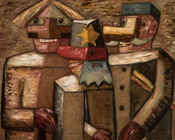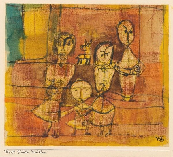 'Children Going Fishing' is a painting by Tadeusz Makowski, who died in 1932. It depicts a cluster of figures in the process of becoming children - or perhaps turning into something else entirely. The ochre palette gives the painting a sense of warmth, but there's also a disturbing flatness to it. The surface is built up of hundreds of tiny marks, like mosaic pieces. Zoom in close and you'll see each one is different, a little world in itself, yet together they form this strangely cohesive image. It's as if Makowski is showing us how art itself is a process of building, layering, and connecting. Look at the face of the central figure. The left side is a rosy pink, while the right side is pale and ghostly. This division adds to the ambiguity, questioning the nature of identity and perception. It reminds me a little of Paul Klee's pedagogical sketchbook, in the way it uses simple forms to explore complex ideas. Ultimately, this painting isn't about fishing at all, but more about the magic and mystery of transformation.