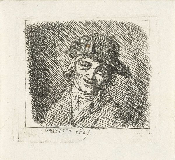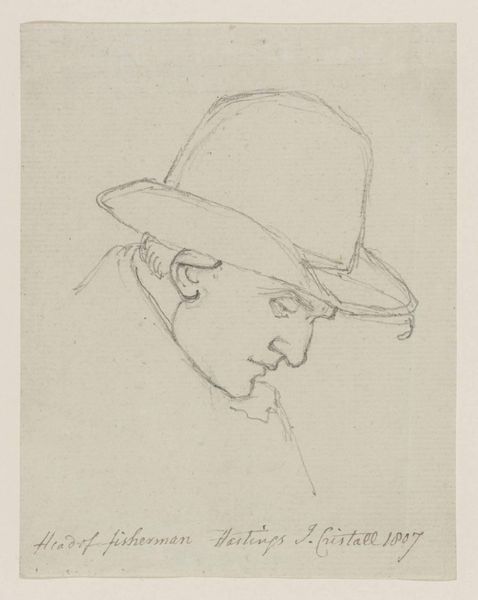 Editor: Here we have Edvard Munch's 1906 drawing, "Emanuel Goldstein," rendered in ink. The subject's piercing gaze is somewhat unsettling. What symbols or deeper meanings do you find embedded within this portrait? Curator: Notice how the lines, though spare, are imbued with a kind of nervous energy. It reflects Munch's emotional landscape but consider: beyond the artist's state of mind, the hat, the moustache – these weren't just stylistic choices. What do you suppose they conveyed to viewers at the time, perhaps about social standing or even profession? Editor: I see what you mean. It could hint at a certain bourgeois identity, though rendered with a touch of unease...Almost like a caricature, stripping away any idealized facade. Curator: Precisely! Think about the 'Goldstein' of the title – what echoes does it summon? Names carry resonance. Was Munch intentionally evoking Jewish stereotypes common at the time, to express a social commentary? The emotional charge is carried by line, form, and *association.* What's revealed through the symbolic charge? Editor: That's fascinating. It brings up questions about Munch's intent and the audience's potential interpretation, influenced by societal biases. It complicates my initial reading quite a bit. Curator: Yes, and remember how portraiture, especially drawings, offered a space for artists to engage with evolving ideas of identity in the face of modernity, right? Symbols are constantly being redefined! What new perspective does this open up for you? Editor: I now recognize that what I initially saw as a simple, albeit unnerving, portrait is actually a rich tapestry of cultural and social commentary, woven into seemingly simple lines. Thanks so much! Curator: And, remember, it's these subtle vibrations that continue to activate the work for new generations of viewers, so stay curious!