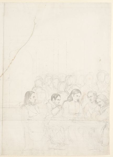 Wilhelm Marstrand made this pencil drawing of an evening gathering at Princess Charlotte Frederikke’s Roman residence. The use of pencil, a humble material, allows for swift, precise lines that capture fleeting moments and subtle nuances of light and shadow. Marstrand's technique reflects academic training, yet its immediacy also aligns with the burgeoning interest in capturing everyday life. Each stroke contributes to a sense of lively atmosphere, hinting at the conversations and interactions unfolding within the room. The varying densities of the pencil marks create a sense of depth and volume, rendering the figures and their surroundings with a tangible presence. The artist would have needed expertise in the handling of pencil as well as the preparation of the drawing surface. Ultimately, this drawing serves as a reminder that even the simplest of materials, when wielded with skill and vision, can offer profound insights into the human experience. It collapses any conventional hierarchy between the high art of oil painting, and drawing as a more workaday practice.