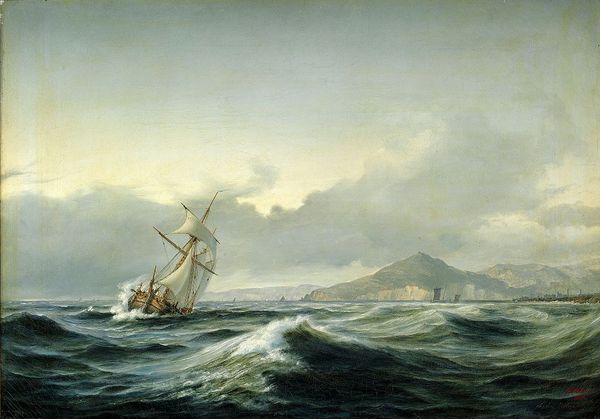 Ivan Konstantinovich Aivazovsky painted this sunny marine scene with oil on canvas. The ships cresting the waves are more than mere vessels; they carry with them the weight of human ambition and exploration. Consider the ship as a symbol, tracing its lineage back to ancient times when boats were adorned with eyes to guide them. Here, the ship becomes a vehicle for traversing not just water, but the depths of the human psyche. It is a symbol of travel, and longing for what lies beyond the horizon. This motif echoes in mythologies across cultures, where boats are passage ways from one world to another, or from life into death. The vast expanse of the sea, with its sublime and often turbulent nature, has a profound impact, evoking feelings of awe, and confronting us with our own insignificance. The waves themselves, reminiscent of the "Pathosformel," or emotional formulas, capture the intensity of human emotion, connecting our inner turmoil with the forces of nature. Just as the sea is in constant motion, so too are our emotions and our place within this endless cycle.