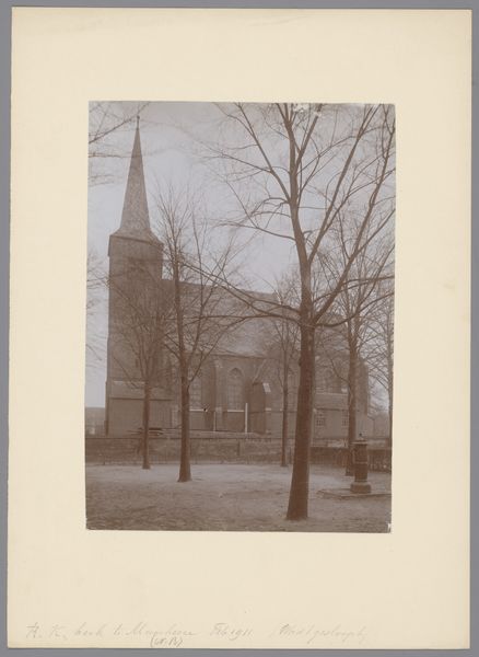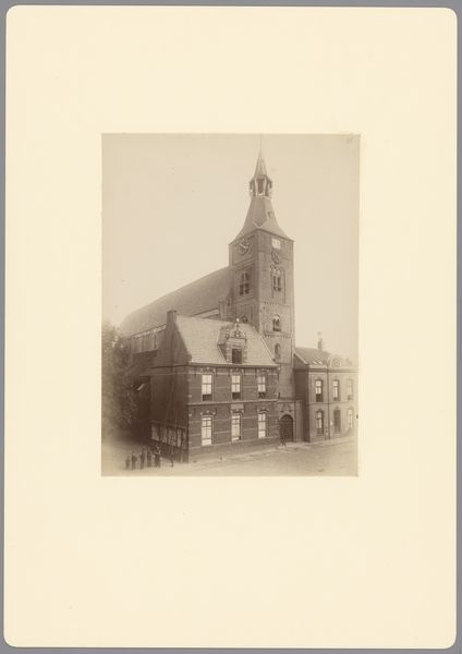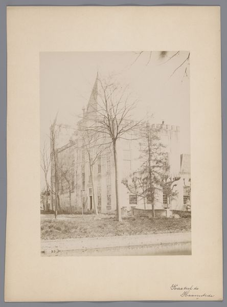 Editor: This photograph from 1898, called "Stadhuis van Vollenhove," seems to show a very formal and imposing building, softened a little by the trees. What does this building and its photograph tell us? Curator: This image provides a lens through which we can explore the complex relationship between power, architecture, and representation. Photographs like these are not neutral records; they are constructed narratives reflecting specific ideological perspectives. Editor: So what kind of perspective are we seeing here? Curator: Consider the act of documenting this Stadhuis, or city hall. In 1898, who had the power to decide what was worthy of documentation? How does the composition—the angle, the light, the inclusion of surrounding nature—contribute to a particular understanding of civic authority? Editor: It does feel like a very composed and almost staged image, now that you mention it. Almost to legitimize that authority? Curator: Exactly. Further, thinking about the period: What political and social tensions might have been present in Vollenhove at the time? And how might this photograph, intended or not, participate in a discourse around those tensions? Editor: So, even a seemingly straightforward image like this can open up discussions about social power dynamics? Curator: Precisely. It encourages us to question not just what is shown, but also why, and by whom, to engage with the photograph as a historical artifact imbued with its own politics. Editor: I never thought I could see so much more beneath a simple photograph! It really puts images in a new context for me. Curator: Excellent. This kind of close reading is essential for understanding the layers of meaning embedded within visual culture.