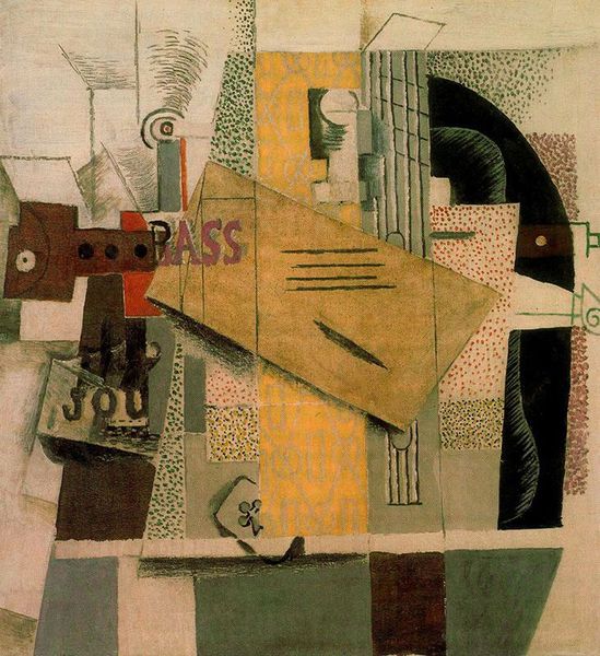 Editor: Here we have Kazimir Malevich's "Guard," painted in 1914. It’s an oil painting, and the first thing that strikes me is the tension between the identifiable forms and the overall abstraction. It feels like a puzzle. What do you see in this piece that I might be missing? Curator: That feeling of a puzzle is key. Malevich, immersed in a world about to erupt in war, fragments the figure of the guard, rendering it through the visual languages of Cubism and Futurism. Do you see how these combined styles emphasize both geometric forms *and* a sense of dynamic movement? Editor: Yes, the sharp angles and overlapping planes create that sense of movement, like the guard is both present and dissolving. But the title "Guard" implies something stable and protective, doesn't it? Curator: Exactly! The tension lies there. Malevich is using a familiar symbol – a guard, representing order and safety – but depicting it in a way that suggests the crumbling of that very order. The fragmented image mirrors the anxieties and uncertainties of the time. Notice the choice of colors as well – muted, earthy tones contrasted with flashes of red and yellow. What might those signal to you? Editor: Perhaps the red and yellow represent flares or warnings, breaking through the more subdued reality of the guard's duty? Curator: Precisely! Malevich uses symbolic color and form to convey a deeper emotional truth about the pre-war era, challenging us to look beyond the surface of familiar symbols and acknowledge their potential for disruption. Editor: I see it now; it’s less about a literal guard and more about the abstract idea of guarding, and how unstable that concept can be. I learned a lot today, particularly to dig deep into symbols. Curator: Indeed! By deconstructing these symbols, we get a potent visual commentary on a world on the brink. Always ask, “What underlying narratives and symbols shape its visual language and cultural memory?"