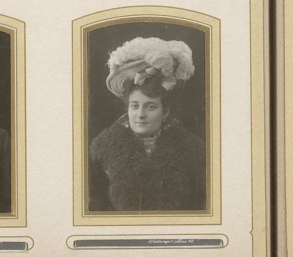 This is a portrait of a young woman with a hat by Boscher, of unknown date, measuring only 85 by 51 millimeters. The subdued tones and small scale create an intimate viewing experience. The woman's gaze is directed slightly off-center, drawing us into the composition. Boscher uses soft focus and delicate gradations of light to model her features and the elaborate hat, creating a sense of depth and texture within the limited space. The framing and presentation, typical of its time, situate the image within a matrix of social codes and conventions related to representation and identity. The portrait flirts with the structuralist idea of signifiers and signified, where the woman and her attire act as signs of social status and femininity. Notice how the formal aspects of the portrait, such as its size and tonal range, work to construct meaning. It's a reminder that even seemingly straightforward images engage with broader cultural discourses.