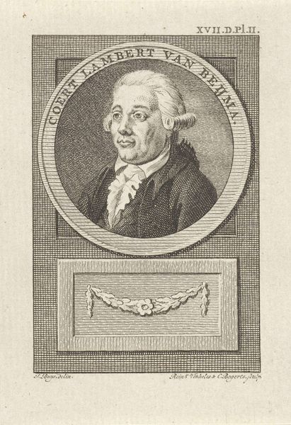 Editor: Here we have "Portret van Alexander Friedrich von Knobelsdorff," dating sometime between 1764 and 1804. It’s an engraving – so, a print – by Peter Haas. I’m immediately drawn to the intricacy of the line work, and how much detail he manages to get from it. What do you see in this piece? Curator: What grabs my attention is precisely the "print" aspect. Think about the labor involved: the engraver, the pressmen, the distributors. This wasn't just about representing the elite von Knobelsdorff. It was about creating a commodity, a reproducible image consumed within a specific social and economic context. How do the materials – the copperplate, the ink, the paper – influence the dissemination of this portrait, and its meaning? Editor: That's fascinating! So, rather than just focusing on von Knobelsdorff himself, we should be considering who *owned* these prints, and what they did with them. It's almost like a very early form of mass media. Curator: Exactly. Who was meant to consume this image? Was it an aspirational object for the bourgeoisie, a memento for family and friends, or perhaps a tool for solidifying von Knobelsdorff’s social standing? Think about how the act of *collecting* prints reflected power dynamics. The labour behind this belies a sophisticated, evolving media landscape. Editor: It makes me see the Baroque style in a new light. The embellishments and the detail feel less about celebrating one person, and more about showcasing a culture of production and consumption. The artistry isn't just in the final image, but also in the technique, the tools, and its purpose in that period. Curator: And in that way it mirrors many processes and products today. That engraving is not merely aesthetic: it shows us so much of that era’s materials, technologies, and socio-economic currents. It recontextualizes everything we thought we understood about portraiture of the era. Editor: I'll definitely look at prints differently now, thinking not just about *who* is depicted, but *how* the image was made, and what that says about the society that produced it.