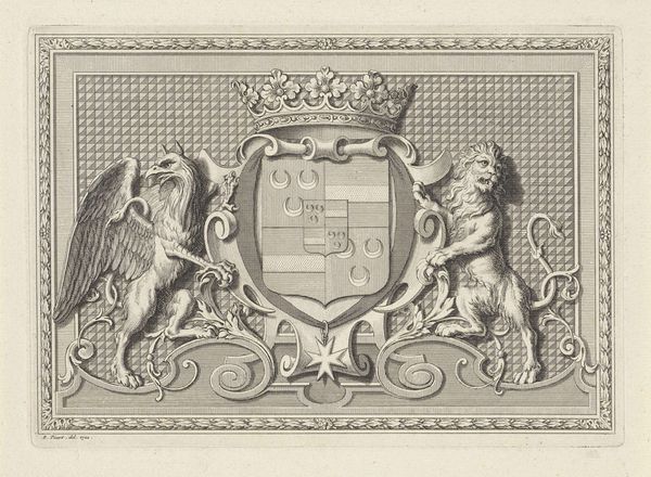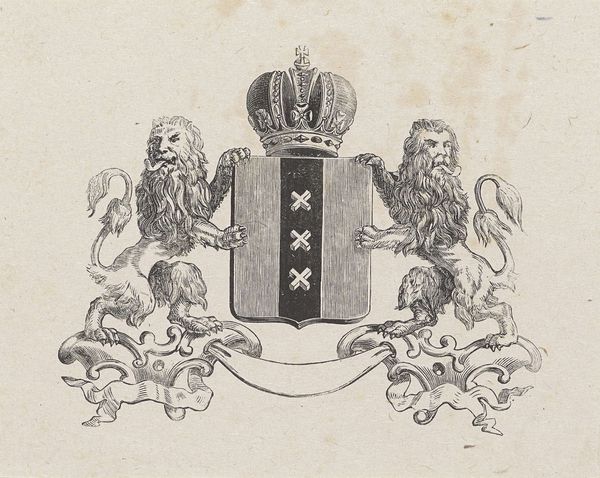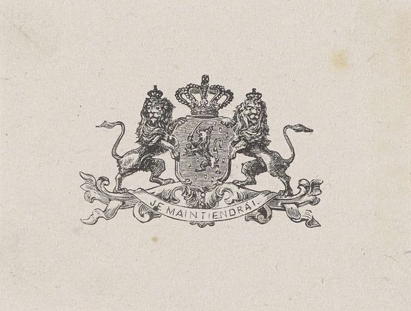 Editor: This is Henricus Wilhelmus Couwenberg's "Wapen van Nederland met motto: Je Maintiendrai", an engraving from around 1830 to 1845. It’s quite striking! What do you make of its... symbolism, I suppose? Curator: I see a powerful articulation of nationhood through the lens of Neoclassicism, a style that frequently draws on historical and mythological themes to reinforce contemporary power structures. How does the motto "Je Maintiendrai" – "I will maintain" – resonate with you in today's political climate, given the resurgence of nationalism? Editor: It feels… loaded, doesn’t it? All that classical imagery feels like a bold claim of historical legitimacy. Do you think it’s trying to evoke a certain kind of authority? Curator: Absolutely. Think about how this imagery connects to colonial legacies and the construction of national identity. Whose narrative is being amplified here? Whose is being silenced? Look closely at those lions, at the crown. What do they *really* represent when considering issues of class and colonialism? Editor: Hmm, it definitely makes me reconsider what "maintenance" really means in this context. It's not just about preserving a nation, but preserving power. Curator: Exactly. Art is never neutral. It's always operating within, and often reinforcing, specific power dynamics. The piece invites us to question who benefits from this particular representation of the Dutch nation. Editor: This makes me think about how national symbols can be so easily co-opted and re-interpreted through various cultural and political agendas. Curator: And how critical engagement can challenge those narratives and expose the underlying power structures that shape them. Thank you, I will consider this in my upcoming analysis. Editor: Thanks to you, too. Now I’ll think twice about the role of seemingly neutral symbols in solidifying particular identities and viewpoints.