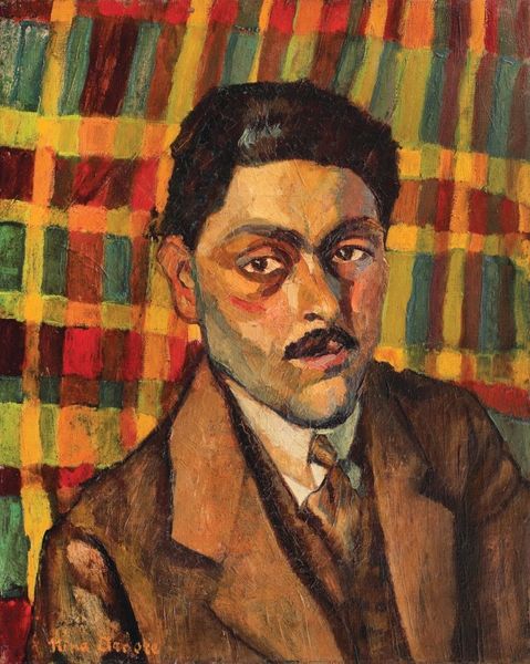 Curator: This is Zinaida Serebriakova's "Portrait of Architect A. J. Beloborodov", created in 1925, rendered primarily in pastel. What impressions does it evoke for you? Editor: Oh, immediately I feel a sense of quiet intensity, you know? The soft focus clashes intriguingly with his rather steely gaze, a bit of an enigma wrapped in gentle color. He looks a bit like a silent film star. Curator: It's interesting you say that, as the portrait exists during the early days of cinema. The cigarette becomes symbolic—a cultural icon associated with intellect and world-weariness, hinting at the social milieu of artists and intellectuals in that era. Editor: Yes! The cigarette. It’s practically another character here, a small exclamation point on his composure. Almost defiant, amidst those serious eyes. He knows something, doesn’t he? Or at least, wants us to think he does. And the books! Curator: The books in the background do anchor him firmly to intellect, but notice how vaguely they're rendered. I read the lack of detailed spines as a statement of how the identity goes far beyond traditional signs of being an educated, well read person. He's architect, but so much more, isn't he? The architecture books aren't enough for him. Editor: That’s so interesting! I saw them more as establishing a specific sense of place. But I like your read much better, of this almost deliberately blurred backdrop to emphasize the power of the individual, his gaze, in this case, which seems the very firm centre. I would not have seen it! Curator: The softness you mentioned also alludes to Serebriakova’s unique rendering. Using pastel allowed her a softer, yet intimate portrayal—quite different from the severe portraits often commissioned by or for male subjects at the time. Editor: The composition feels very intimate, you're right. It is so much softer than what I'd expect of this time! I initially missed how carefully the informality seems stage managed - this "off-the-cuff" portrayal has taken a lot of effort to create this "moment" that seems to occur. He is making sure he gets his best angle! Curator: A vital perspective that blends social semiotics with art! I find that revealing. Editor: And now I see a bit of wry humour peeking through. What a fascinating, layered portrait!