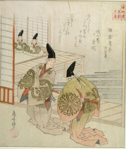 Curator: Katsushika Hokusai’s woodblock print, "Toy Horse, Fan and Incense Burner," presents a still life imbued with subtle symbolism. I'm immediately struck by the juxtaposition of the playful toy horse with the more formal, almost ritualistic objects. Editor: It’s interesting how Hokusai elevates everyday objects, placing a child’s toy alongside items associated with ceremony. Is it a commentary on class distinctions or the performative nature of social rituals? Curator: The choice of materials speaks volumes. The contrast between the wood of the horse and tray with the delicate paper of the fan highlights the different forms of labour involved in their production. Editor: And how those forms of labour reflect on the societal roles of those who create and consume such objects. The poems, too, contribute to understanding the cultural context of this series. Curator: Precisely, situating the artwork within its socio-economic framework unveils the nuanced relationship between art, craft, and consumerism in 19th-century Japan. Editor: It encourages us to reconsider these objects, not just as aesthetic items but as tangible representations of a particular moment in history.