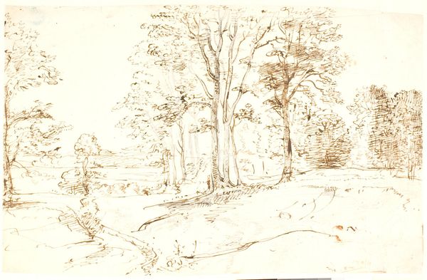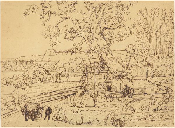 Curator: Here we have Dankvart Dreyer's "Flere landskabskompositioner med en vej, der i forgrunden fører over en bro," a work from the 1840s rendered in ink and pencil. Editor: My first impression? It feels like a memory barely clinging to paper, the landscapes overlapping and fading. It is a rather whimsical series of pen sketches. Curator: Indeed. Dreyer, though often celebrated for his oil paintings, frequently used sketches to work through compositions, experiment with perspective, and capture the fleeting qualities of light in the Danish landscape. This one feels like he's trying to pin down a feeling. Editor: Yes, a feeling, not a precise location. The lines are so delicate, almost hesitant. Look how he suggests forms rather than defines them. It really embodies that Romantic notion of the sublime—nature just beyond grasp, both beautiful and terrifying. Curator: I see the "terrifying" element more as a commentary on artistic process. Dreyer's struggle with academic convention—the rigid rules of composition— is reflected in his looser sketching style. He valued individual perception above all. It almost feels like we’re witnessing the artist’s internal battle between structure and freedom. Editor: Perhaps, or maybe he was simply restless, hopping from scene to scene before a single image could truly crystallize! It makes me wonder what the art world expected from its artists, and if the sketch was simply the antithesis of it. Was this his silent rebellion, displayed by Romantic artists during that time? Curator: That's precisely it. Dreyer and his contemporaries actively pushed back against artistic norms, making sketching not just preparatory, but an expressive medium in itself. By exhibiting sketches, they challenged academic expectations of what constituted "finished" art. Editor: It really makes you wonder what landscapes stuck with Dreyer to sketch it in multiple fashions in the same frame. Overall, a deeply romantic landscape, in its rawness and freedom of constraint. Curator: And I am always left wondering about the quiet battles waged within the art world itself. Food for thought.