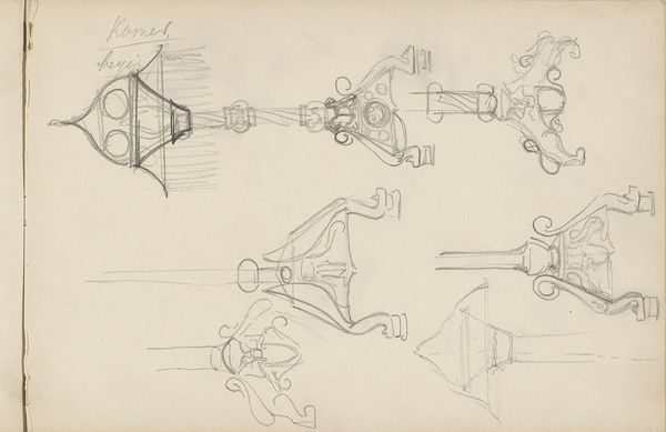 Carel Adolph Lion Cachet sketched these "Ontwerpen voor lampen met meerdere kappen" at an undetermined date with pencil on paper, and what strikes me most is that grid. It's like a foundation, or maybe a set of rules, that the artist then playfully ignores. There's something so intimate about seeing an artist's process laid bare like this, right? The graphite is thin, almost tentative in places, then bold and decisive in others. Look at the way he renders the lampshades, sometimes just a few quick strokes, other times more considered, almost architectural. You can imagine him, pen in hand, figuring things out as he goes. It reminds me a bit of some of David Hockney's sketchbooks, that same sense of playful experimentation. But where Hockney is all about capturing the light, Cachet is more interested in form and structure. Ultimately, these aren't just sketches of lamps; they're little drawings about the very act of seeing and designing.