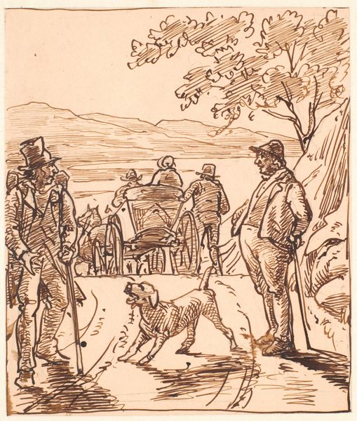 This drawing, Hunter, was made by Hans Thoma, probably in 1905. Look at the way he makes his marks, those energetic lines, all working together to create depth and form! It’s like watching a dance between the pen and the paper. The drawing has this raw, immediate feel. The lines are not overly precious, instead there’s a sense of searching, as if Thoma is thinking through the image right in front of us. Check out the way the dogs' bodies are rendered with these quick, wiry strokes, versus the flatter areas of the hunter's coat. You can almost feel the textures – the softness of their fur, the stiffness of the fabric. The landscape in the background is really interesting. It reminds me of the way Cezanne built forms with color, except here, Thoma is doing it with line. This piece feels a bit like a nod to the work of Daumier with its earthy subject matter. Art’s like a big conversation, isn't it? Never really a final word. It’s a reminder that there are endless ways to see, to feel, and to interpret the world around us.