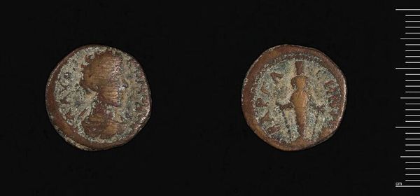 Editor: Here we have a Copper Assarion by Andronikos II, currently held at the Harvard Art Museums. Seeing it displayed like this makes me consider how such a small object can carry so much weight and historical context. How do you interpret this coin? Curator: It represents the power structures of the Byzantine Empire, but more importantly, it reflects the daily lives and economic realities of ordinary people under Andronikos II's rule. What does it mean to hold the symbol of power in the palm of your hand? Editor: I guess it makes the power feel more tangible, less abstract? Curator: Exactly! Currency is a social contract, a shared belief system. And this coin reminds us that even the smallest objects can be powerful agents of cultural and political meaning. Editor: That's definitely a new perspective for me, thank you. Curator: My pleasure. It's about understanding how even everyday objects participate in the grand narratives of history.