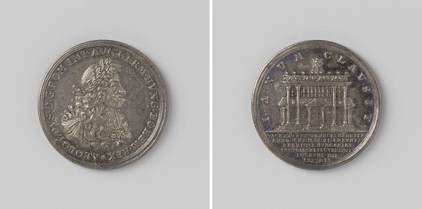 Editor: Here we have a medal, commemorating Argentina’s participation in the 1915 Panama-Pacific International Exposition in San Francisco. It seems to be made of some kind of metal. The detail is impressive, but I'm curious—what do you see in this piece, especially beyond its surface appearance? Curator: From a materialist perspective, it's compelling. This medal isn't just about celebrating a nation’s presence at an exposition; it's about the socio-economic relationships encoded within its creation and circulation. Consider the material itself—likely silver or a base metal with silver plating. Where were these materials sourced, and under what labor conditions? Editor: That's an interesting way to think about it. I was focusing on the imagery - the building, the hand shaking... Curator: Exactly! And that building represents power, constructed from specific materials and techniques dictated by prevailing architectural philosophies, and more fundamentally the availability of resources and labour. The exposition itself was an enormous feat of material organization – consider the labor needed to transport materials across continents, and the intended economic impact on San Francisco, especially after the 1906 earthquake. Editor: So, it's more than just a memento; it's a record of economic and social factors. The production and distribution are a fundamental part of its story. Curator: Precisely. Think about who would have owned such a medal. It's likely not a common worker but rather someone with a certain level of economic and perhaps political capital, signifying access to the global economy represented by the exposition itself. Editor: This really opens my eyes to the layers of meaning embedded in an object I might have initially overlooked. It is an economic record expressed as an aesthetic object. Curator: Absolutely! Understanding the medal's material production gives a new dimension to its story.