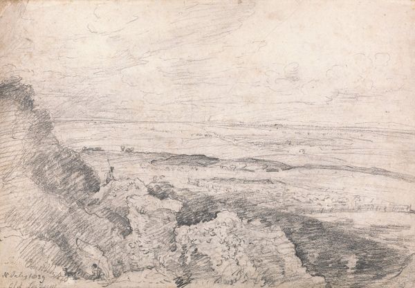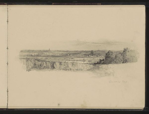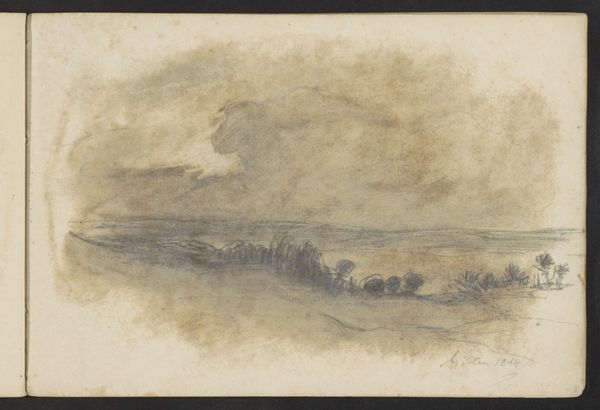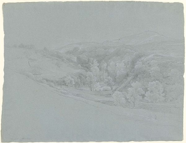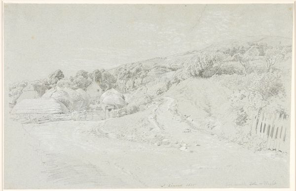 Editor: This is "Farmhouse on a Country Lane Between Trees," a pencil and charcoal drawing on paper made around 1840 by Johannes Tavenraat. I find it quite atmospheric – there's a real sense of depth even with the limited range of tones. What do you see in this piece? Curator: What strikes me is the way Tavenraat uses light and shadow. It is almost as if we see not just a farmhouse, but an archetypal idea of 'home' itself, wouldn’t you agree? Note how the artist invites us in while concealing more than is revealed. Editor: You’re right. It’s interesting how the lack of detail in some areas makes you focus more on the core elements, like the house itself. Curator: Consider the path leading to the house – a potent symbol throughout art history representing our life’s journey. The trees, also, aren't merely landscape details. They stand almost as sentinels, guardians of the home's quietude and, metaphorically, our psychological space. What emotional effect do they have on you? Editor: I hadn’t thought about that level of symbolism, but it makes sense. The trees definitely give a feeling of shelter. They emphasize a connection between the farmhouse and nature. Curator: Precisely! This connection is not arbitrary, either. Observe how light falls softly on the farmhouse. The artist positions this safe home within the organic world as a psychological refuge. The work isn't just a pretty picture, it's about finding your psychological haven within the world. How fascinating. Editor: That's a really interesting way of looking at it. It has definitely shifted my understanding of the drawing and makes me see even seemingly plain drawings in a totally different way. Curator: Indeed. Even seemingly simple scenes may bear profound messages and resonant symbolic meanings.