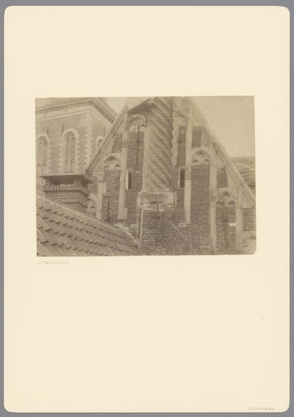 This is a photograph of the Bergkerk church in Deventer, made by Johann Heinrich Martin Bosse. Captured through the lens, the image is more than just a depiction; it’s a careful negotiation between light-sensitive materials and the built environment. The sepia tones give the photograph a warm, aged quality, typical of photographic processes from the late 19th century. This aesthetic was achieved through the labor-intensive darkroom processes of the era, using techniques like albumen printing or similar methods that required coating paper with light-sensitive emulsions. The architecture of the church, with its towering spires and Gothic windows, contrasts with the subtleties of the photographic print, highlighting the transition from hand-built craftsmanship to early industrial image-making. Bosse’s work provides insight into the culture of the time, reflecting both an appreciation for architectural grandeur and the burgeoning field of photographic reproduction. It underscores how new technologies began influencing our perception and preservation of cultural landmarks.