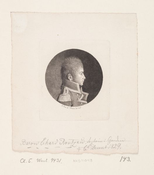 Curator: Here, we see Auguste Gaspard Louis Boucher Desnoyers’ print, "The King of Rome," currently residing in the Harvard Art Museums. Editor: The starkness of the monochrome really emphasizes the child’s almost doll-like stillness, a portrait of power, oddly fragile. Curator: Indeed. It's important to remember the social context: this image serves as propaganda, imbuing Napoleon's son with the weight of dynastic expectation. It's about legitimizing power. Editor: And how interesting, the craft behind this political piece. Look at the detail in the etching—the layering of line to create depth and shadow in the velvet cushion. Curator: It’s about power, but also anxieties around succession. The symbols—the wreath, the imperial ‘N’—speak to a lineage of dominance. But can it really be inherited? Editor: The materiality and the process of the printmaking— the labor involved in producing multiple copies—speaks to the intent of mass dissemination. Curator: Absolutely. It speaks volumes about the construction of identity, the expectations placed upon this child. Editor: I appreciate the way it makes me consider the labor involved in making political imagery. Curator: And I see it as a potent reminder of the complex narratives surrounding power, gender, and inheritance.