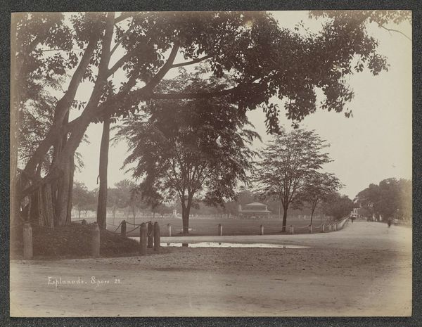 Editor: This photograph, titled "Brug over kanaal," from around the 1900s to 1910s, really captures a sense of rural tranquility. It's simple—a bridge over a canal, a dirt road—but there's something compelling about the composition. What do you see in this piece? Curator: What I see is a record of a colonial infrastructure imposed upon a landscape and its people. Consider the canal itself. Was it built for irrigation, for transport? By whom? For whose benefit? The presence of a person seated near the tree almost merges with the scenery and represents the exploitation and subjugation by external interventions such as the colonizers. Editor: That's interesting; I hadn't considered the colonial aspect. The canal seemed like a simple part of the landscape. But thinking about who built it, and why, changes everything. Curator: Precisely. And it encourages us to examine not just the 'what' but the 'who,' 'how,' and 'why' behind every element. How might the local community have experienced this 'improvement'? Who had the power to reshape the landscape? Editor: So, you're saying that this seemingly peaceful scene actually hints at a much more complex, and possibly unjust, history? Curator: Absolutely. Art, even seemingly straightforward landscape photography, is rarely neutral. It reflects, often subtly, power dynamics and societal structures of its time. Does this interpretation challenge or alter your initial impression of the photo? Editor: It definitely does. I'm starting to see it less as a tranquil scene and more as a document of a specific time and place, shaped by unequal forces. Curator: That shift in perspective is exactly what critical engagement with art is about. It prompts us to ask questions and look beyond the surface. Editor: I'll definitely look at other landscape images with a different eye now. Thanks!